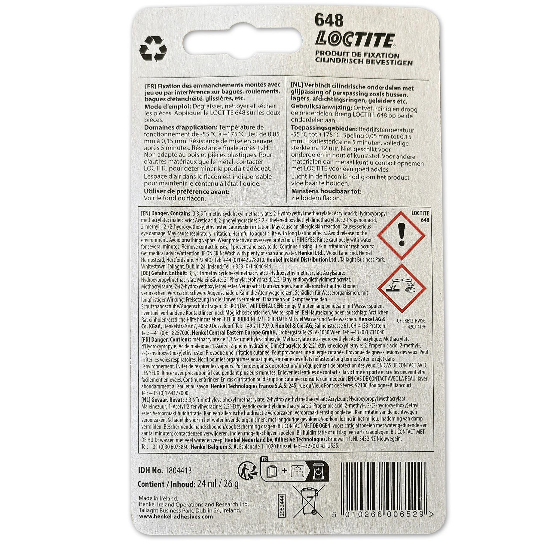 LOCTITE 648 FREIN FILET FORT PROFESSIONNEL - FIXATION FORTE 24 ml