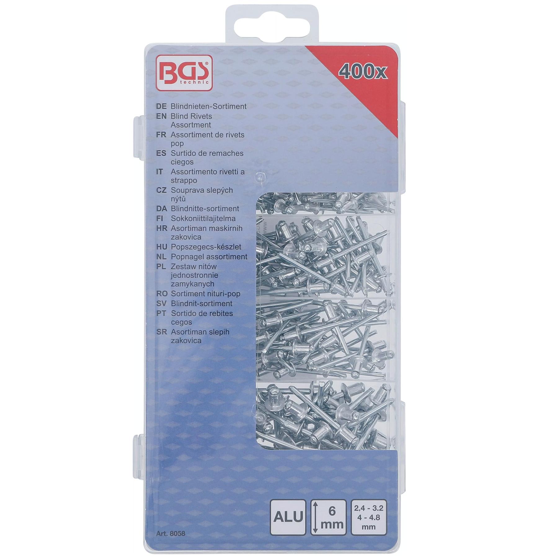 RIVET POP AVEUGLE 2.4, 3.2, 4, 4.8 - BOITE ASSORTIMENT 400 RIVETS BGS